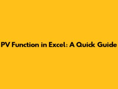 PV Function In Excel: A Quick Guide