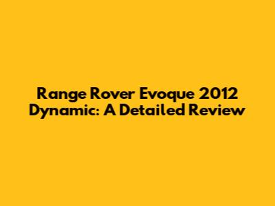 Range Rover Evoque 2012 Dynamic: A Detailed Review