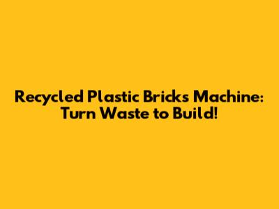 Recycled Plastic Bricks Machine: Turn Waste To Build!
