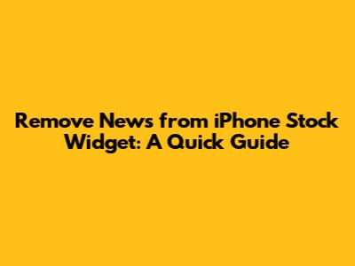 Remove News From IPhone Stock Widget: A Quick Guide