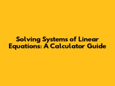 Solving Systems Of Linear Equations: A Calculator Guide