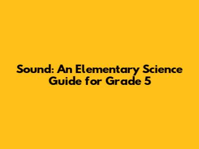 Sound: An Elementary Science Guide For Grade 5