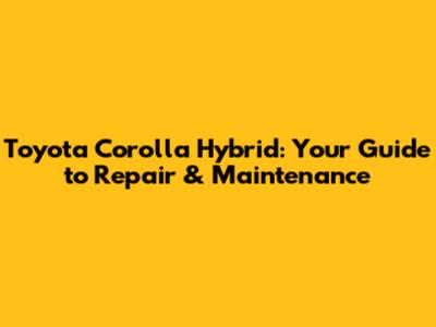 Toyota Corolla Hybrid: Your Guide To Repair & Maintenance