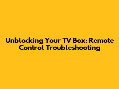 Unblocking Your TV Box: Remote Control Troubleshooting