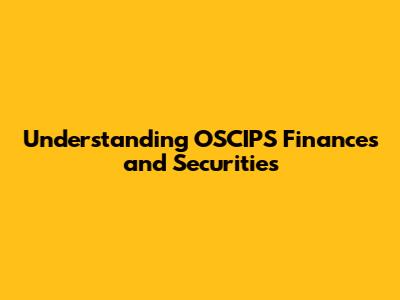 Understanding OSCIPS Finances And Securities