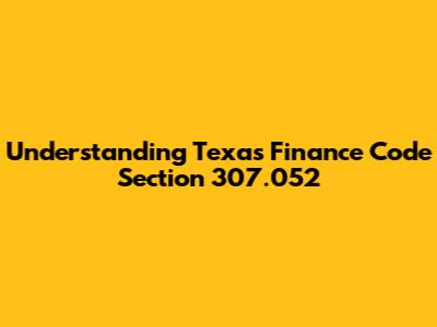 Understanding Texas Finance Code Section 307.052