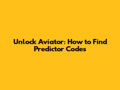 Unlock Aviator: How To Find Predictor Codes