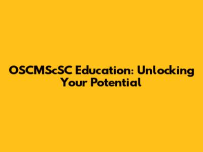 Unlock Your Potential With OSCMScSC Education