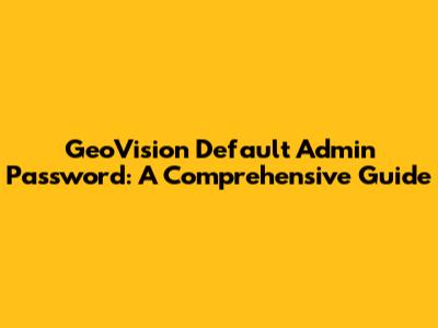 Unlocking GeoVision: Default Admin Passwords And Security Tips