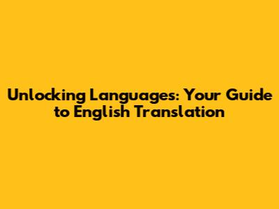 Unlocking Languages: Your Guide To English Translation