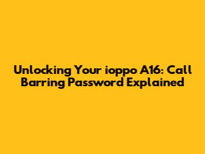 Unlocking Your Ioppo A16: Call Barring Password Explained