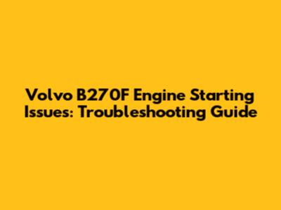 Volvo B270F Engine Starting Issues: Troubleshooting Guide